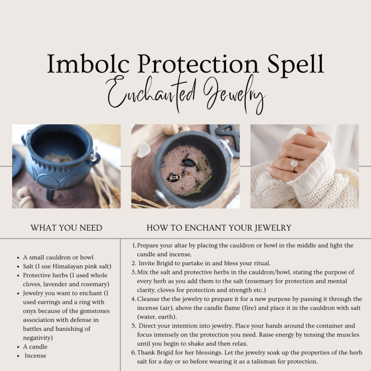 In a version of the myth, Brigid journeys through the world at Imbolc, banishing darkness by spreading her light and warming the earth to kindle spring. There is beauty, hope and strength in this image and I will invoke Brigid’s light to banish my darkness in my ritual. But on a less abstract level, I will invoke Brigid the blacksmith by enchanting a piece of jewelry with all the fiery strength that goes into forging shields and armor for the battlefield.